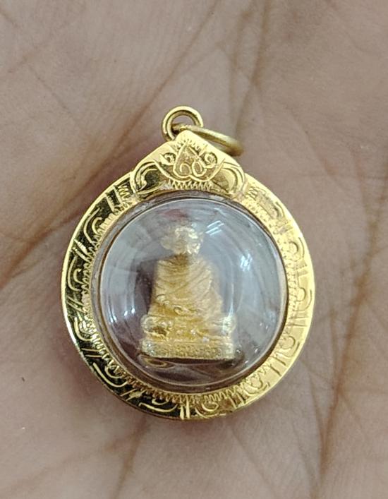 รูปเหมือนจิ๋วเสาร์5หลวงพ่อเกษมเนื้อทองคำเลี่ยมทองพร้อมใช้