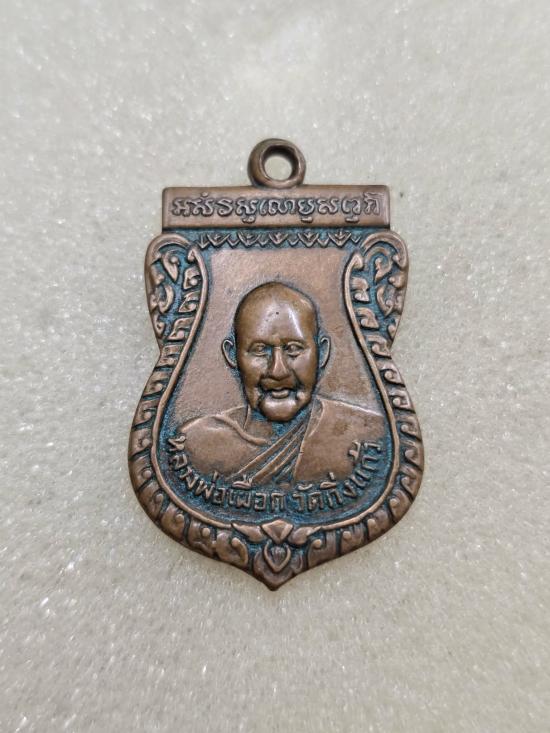 เคาะเดียวแดง เหรียญเสมา หลวงปู่เผือก วัดกิ่งแก้ว ปี 2513 เนื้อทองแดง |