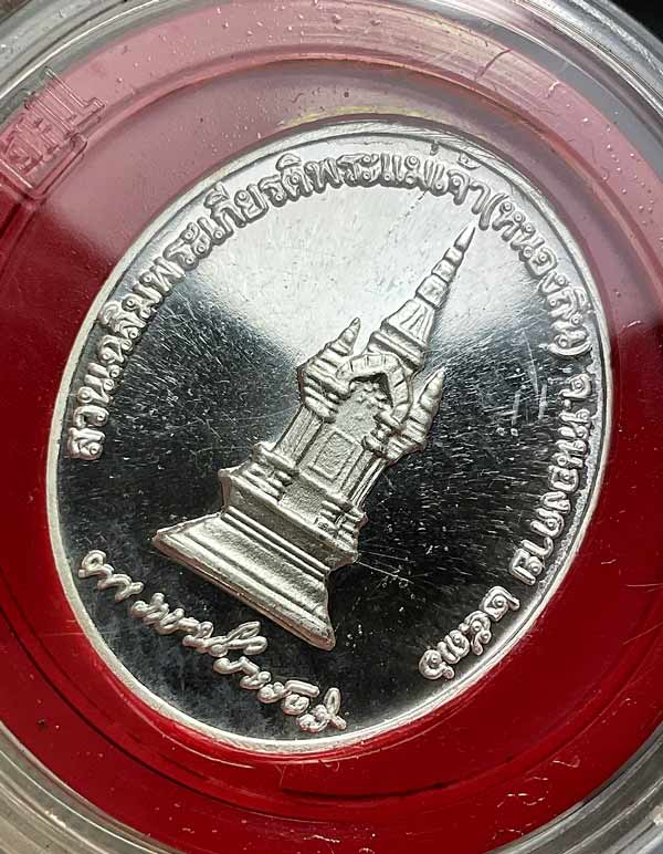 เหรียญเนื้อเงิน รัชกาลที่5 (ตอกโค็ด) สวนเฉลิมพระเกียรติพระแม่เจ้า หนองถิ่น หนองคาย ปี2536 //เหรียญสถาพสวยมาก หายากค่ะ