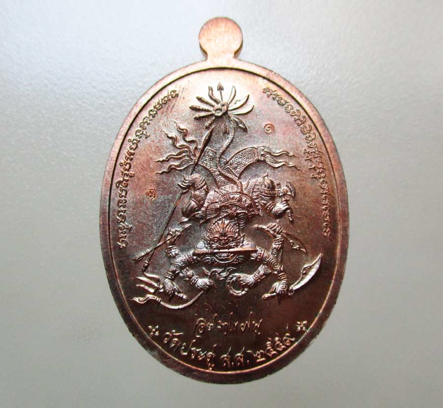 เหรียญมหาปราบ พระมหาสุรศักดิ์ วัดประดู่พระอารามหลวง จ.สมุทรสงคราม พ.ศ.2559 เนื้อนวะโลหะ ตอก 2 โค๊ต ตอกเลข มีรอยจารยันต์ สภาพเหรียญสวยกริ๊บๆ !!
