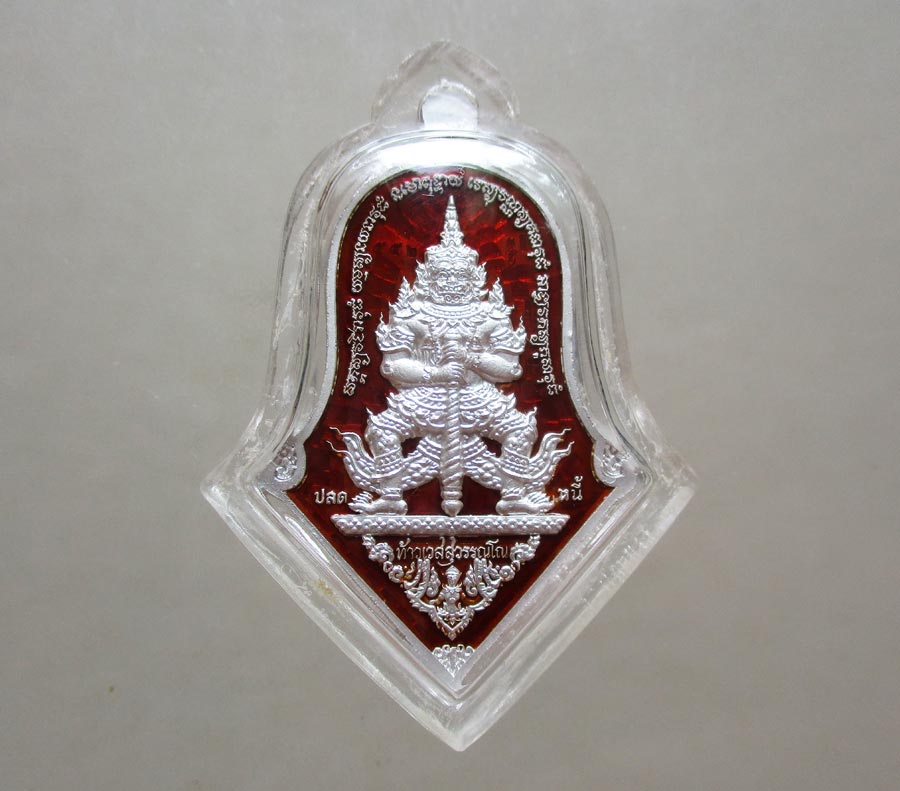 เนื้อเงินบริสุทธิ์ ลงยาราชาวดีสีแดง หน้ากากทองคำ
