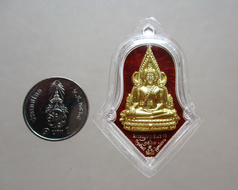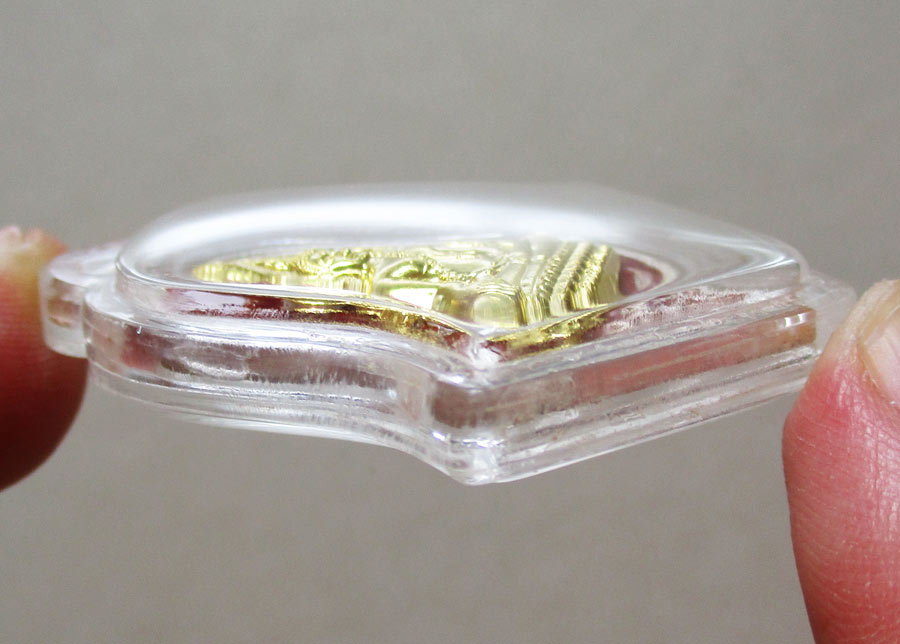 ขนาด 2.8 ซ.ม. X 4.3 ซ.ม. สภาพเหรียญสวยสมบูรณ์ เลี่ยมกันน้ำ ( เคยเลี่ยมจับขอบ กรอบทองคำ )