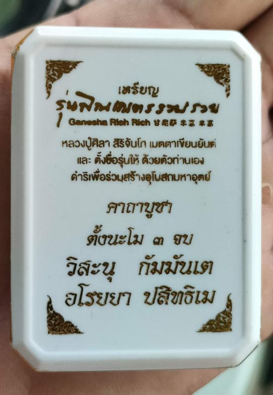 เหรียญพระพิฆเนศรุ่นพิณเณตร รวย รวย หลวงปู่ศิลา อุปถัมภ์สร้างโบสถ์มหาอุตม์ วัดบ้านโนนเดื่อ จ.ร้อยเอ็ด เนื้ออัลปาก้าซาติน ลงยาแกแล็คซี่ เลี่ยมกรอบชุบทองอิตาลี หมายเลข ๔๕ พร้อมกล่อง ผลรวมได้๙ ลงยาสวยมากคับ |