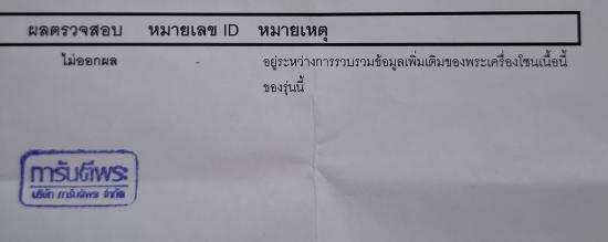 การันตีพระไม่ออกผล โดยแจ้งเหตุผลว่า อยู่ระหว่างการรวบรวมข้อมูลเพิ่มเติมของพระเครื่องโชนเนื้อนี้ของรุ่นนี้ค่ะ