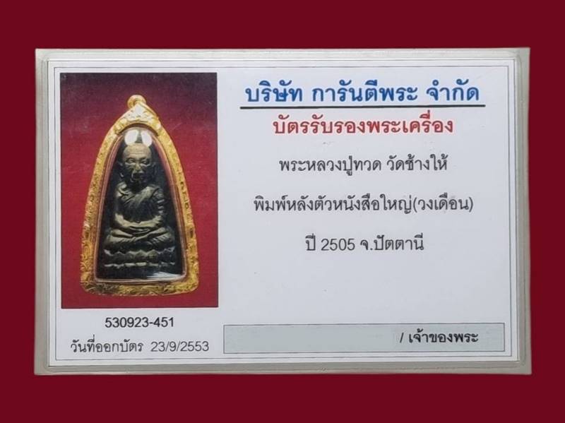 หลวงปู่ทวด หลังหนังสือ พิมพ์ใหญ่ ปี 2505 บล็อควงเดือน