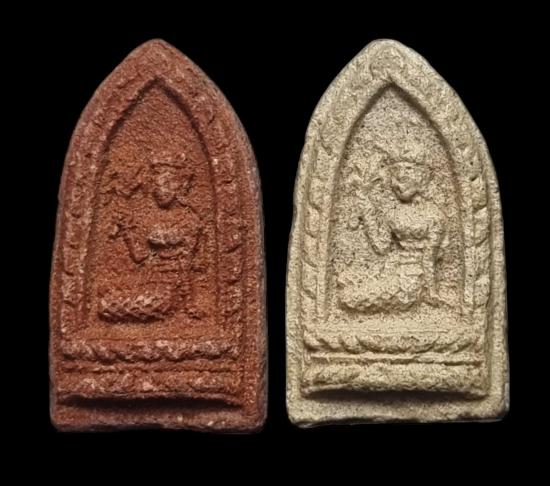 พระแม่โพสพ (พระแห่งความอุดมสมบูรณ์) เนื้อข้าวมธุปายาส + เนื้อผงชานหมาก ( น้ำตาล ) สมเด็จพุฒาจารย์ฯ ( นวม ) วัดอนงค์ฯ ปี 2497 ผสมผงเก่าหลวงปู่ศุข วัดปากคลองมะขามเฒ่า สภาพสวยสมบูรณ์ มาเป็นคู่แบบนี้หายาก