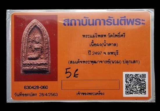 พิมพ์แม่โพสพ สร้างด้วยเนื้อข้าวทิพย์เพียงสองกะทะ ได้พระทั้งหมดประมาณไม่เกินสองพันองค์ มีสองวรรณะ คือเหลืองนวล(แก่ผงเกสร) และ สีเข้มออกส้ม(แก่ข้าวทิพย์) ปัจจุบันในพื้นที่วัดโพธิ์ศรี ลพบุรี จะหาพระพิมพ์นี้ดูได้ยากมาก นับได้ไม่เกินหลักสิบองค์ เพราะพระในวันงานแจกให้เฉพาะพระผู้ใหญ่และกรรมการจัดงานเท่านั้น พระส่วนใหญ่หลังเสร็จพิธีสมเด็จฯพุฒาจารย์ฯ(นวม) ท่านได้นำกลับกรุงเทพฯไปแจกให้แก่ผู้มีจิตศรัทธาบริจาคเงินร่วมทำบุญถึง ๓๐๐ บาทต่อ ๑ องค์ (ในสมัยนั้น) ขนาดองค์พระกว้าง 1.5 ซ.ม. สูง 2.7 ซ.ม.