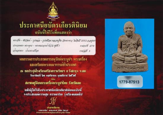 ใต้ฐานปิดแผ่นทองคำแท้ (ขนาด 1 x 1 ซม.) ตอกโค๊ต พร้อมใบประกาศครับ