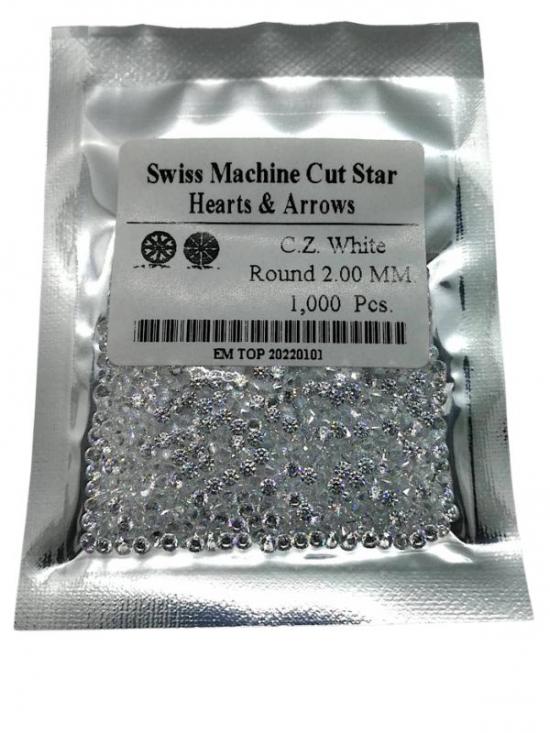 เพชรรัสเซีย CZ เกรดพรีเมียม Swiss Machine Cut (8H&8A) กลม 2.00 มม.