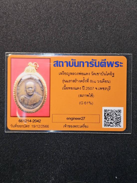 เหรียญหลวงพ่อแดงรุ่นแรกสร้างครั้งที่ 8 พิมพ์ ( ๘ วงเดือน ) สร้างปี 2507 เลี่ยมทองพร้อมใช้ครับ พร้อมบัตรรับรอง