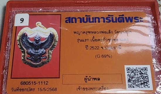 พญาครุฑ ล.พ เส็ง รุ่นแรกปี 2522 เลี่ยมทองพร้อมใช้ พร้อมบัตรรับรองครับ