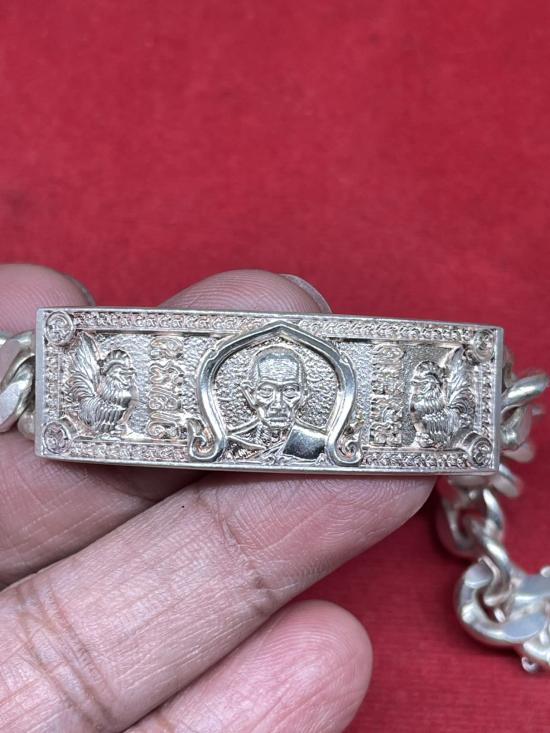 หลวงพ่อรวย วัดตะโก จ.อยุธยา เลสข้อมือ รุ่นไตรมาส 59 รวย รวย รวย ปี59 เนื้อเงิน ขนาด4บาท