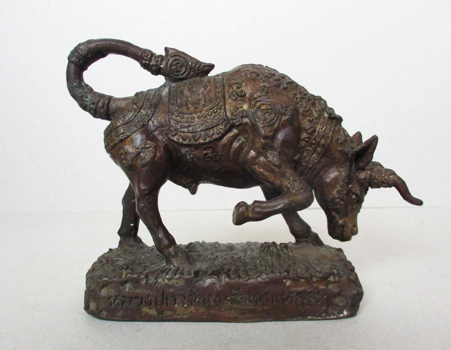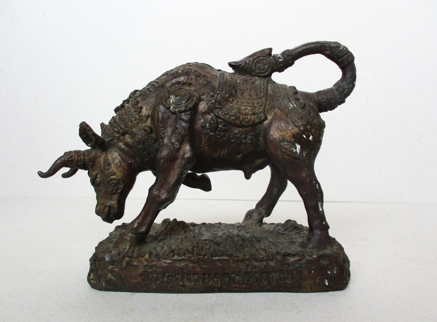 วัวธนูทองคนองฤทธิ์ หลวงปู่กาหลง วัดเขาแหลม เนื้อสัมฤทธิ์ ขนาดบูชา 5 นิ้ว สภาพศิลป์สวย !!