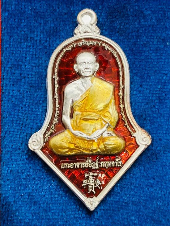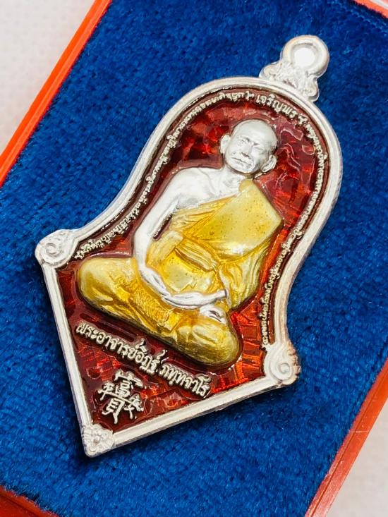 เหรียญรุ่นแรก รูปเหมือนทรงจำปี รุ่นเจริญพร หลวงพ่ออิฏฐ์ วัดจุฬามณี เนื้อเงินลงยาแดง กล่องครบ