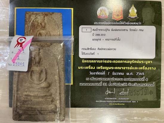 ขนาดบูชา แช่น้ำมนต์ สร้างปี 2495 สภาพสวย สมบูรณ์ ไม่หักไม่ซ่อม รับประกันพระแท้ ดูง่าย ใบประกาศรางวัลที่1งานสมาคม