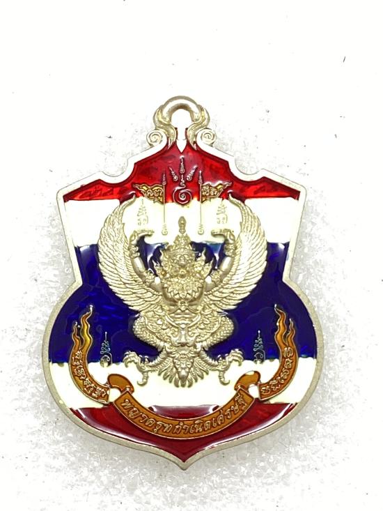 เหรียญพญาครุฑ ด้านหลังท้าวเวสสุวรรณ กฐินสามัคคีปี61 ครูบาวิรุต วัดสันมะเหม้า เนื้ออัลปาก้า ลงยาลายธงชาติ กล่องเดิม |