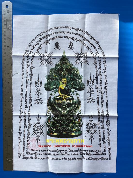 ผ้ายันต์ พระพุทธานุภาพ วัดนาคปรก เขตภาษีเจริญ กรุงเทพมหานคร สีขาว ขนาด A3 ( 11.5 นิ้ว x 16.5 นิ้ว )