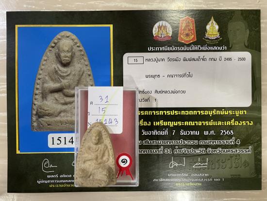 สร้างปี 2495 สภาพสวย สมบูรณ์ ไม่หักไม่ซ่อม รับประกันพระแท้ ดูง่าย ใบประกาศรางวัลที่1งานสมาคม