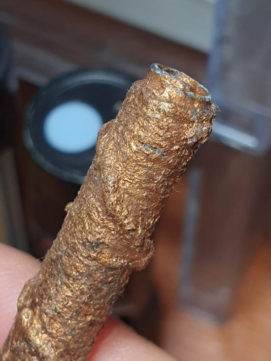 ตะกรุดเนื้อตะกั่วถักเชือกทาทอง ขนาด 4 นิ้วไม่ทราบที่