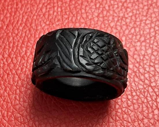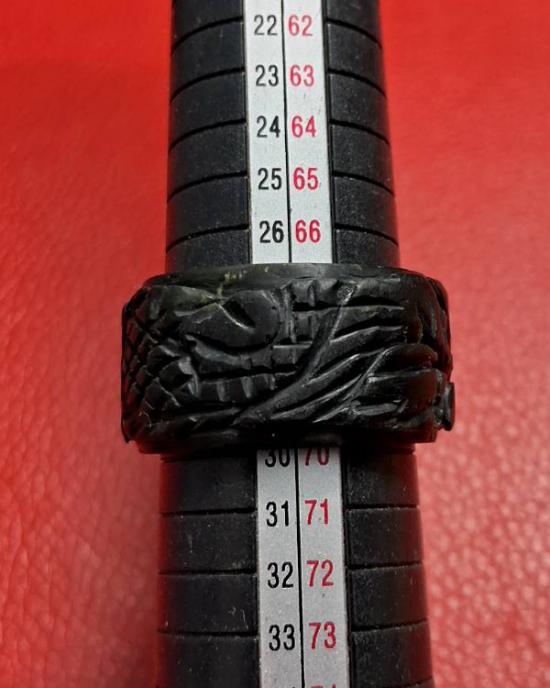 แหวนหยกดำแกะลายมังกร หยกพม่าแท้ 100 % (แสงส่องผ่าน) เส้นผ่าศูนย์กลาง 2.4 ซม. หนา 1.4 ซม. หายากวงใหญ่ๆ ไม่ค่อยได้มาบ่อย ราคาค่อนข้างสูง (กท.73)