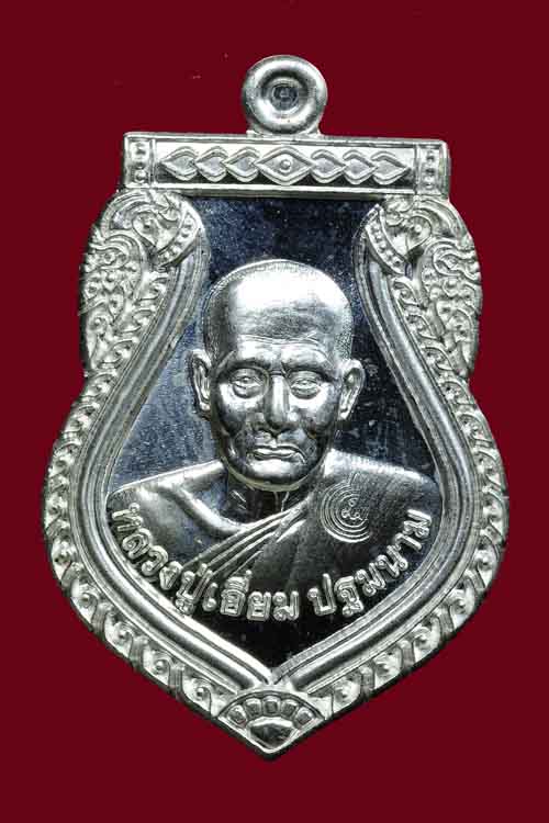 เหรียญเสมา เนื้อเงิน หลวงปู่เอี่ยม วัดสพานสูง อ.ปากเกร็ด จ.นนทบุรี ออกในวาระ ปฐมนาม ครบรอบ 120 ปี ละสังขาร ปี 2559 พร้อมตลับเดิมๆๆ