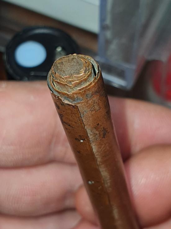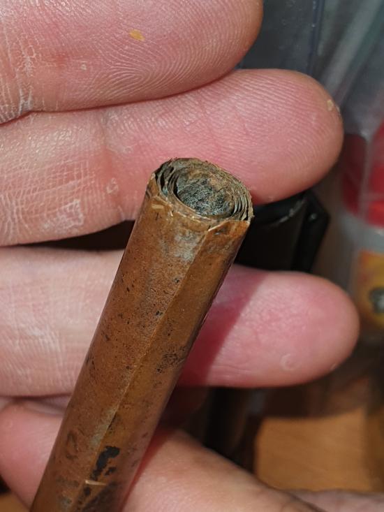 ตะกรุดเก่าเนื้อทองแดงจารเต็ม ขนาด 5 นิ้ว ไม่ทราบที่