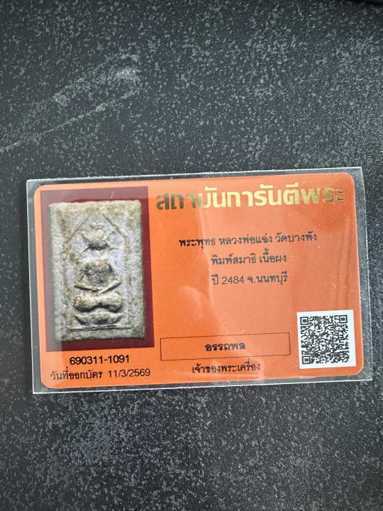 พระพุทธ หลวงพ่อแฉ่ง วัดบางพัง พิมพ์สมาธิ เนื้อผง ปี 2484 จ.นนทบุรี