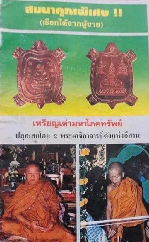 เหรียญเต่ามหาโภคทรัพย์ปี 38 หลวงปู่พรหมมาเขมจาโร พิเศษมีจารย์ รายมือหน้าหลัง คมชัด#มีหลวงพ่อคูณ วัดบ้านไร่ ร่วมปลุกเสกด้วย