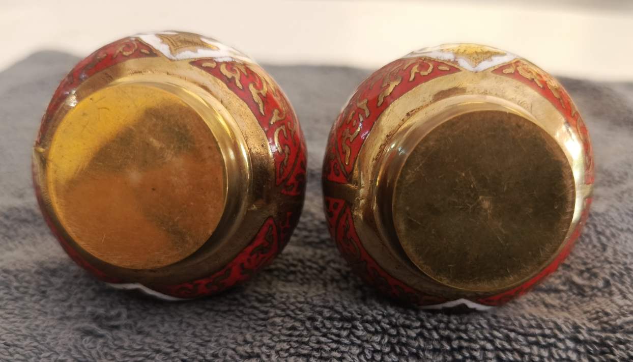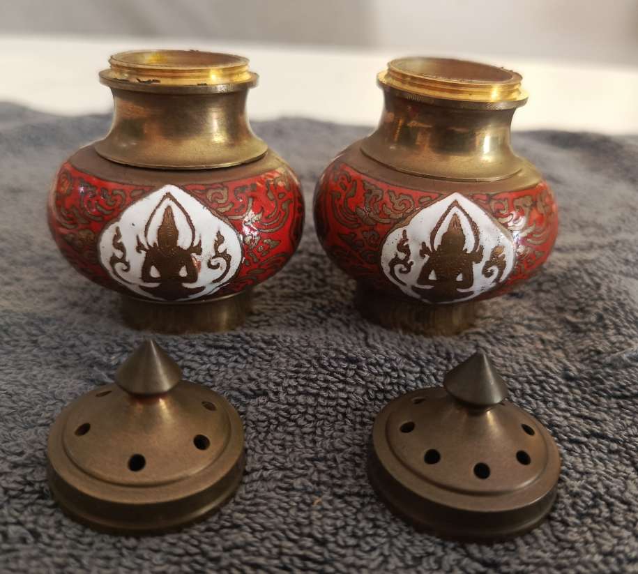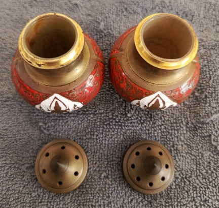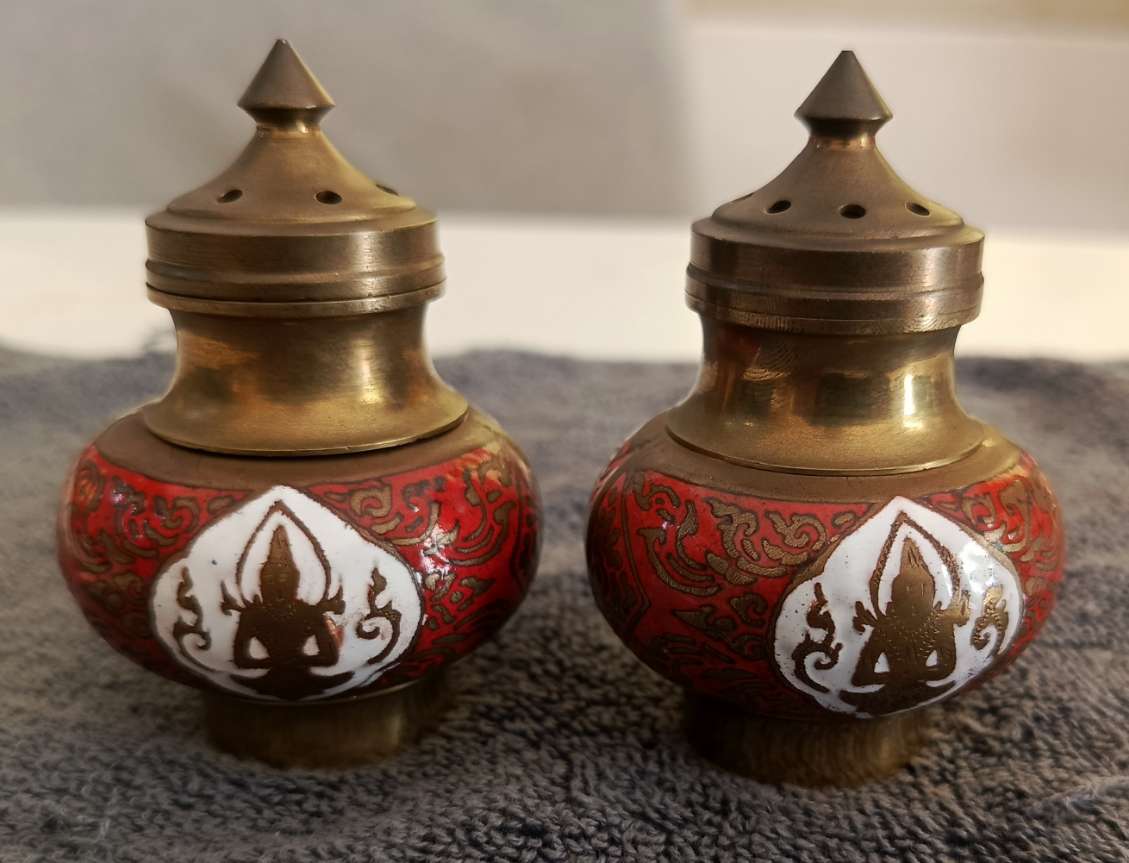 ชุดเครื่องปรุงทองเหลืองลงยาเทพพนม ยกคู่2ชิ้น สภาพสวยไม่ผ่านการใช้ครับ