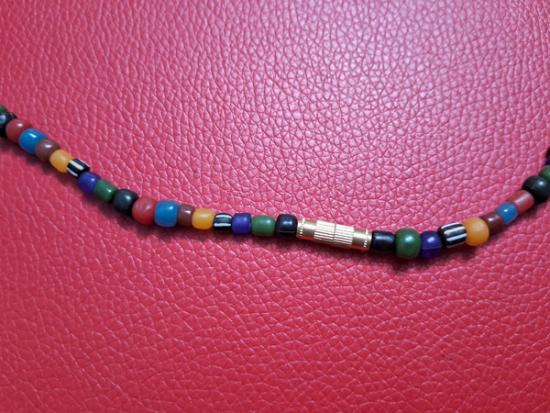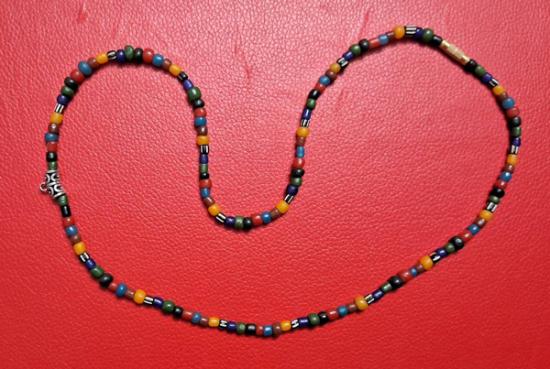 สร้อยคอลูกปัดทราวดี ลูกปัดโบราณสวยๆ ความยาว 24 นิ้ว สวมหัวได้หรือหมุนเกลียวทองเหลืองถอดออกก็ได้ สามารถห้อยพระได้ 1 องค์ (กท.32)