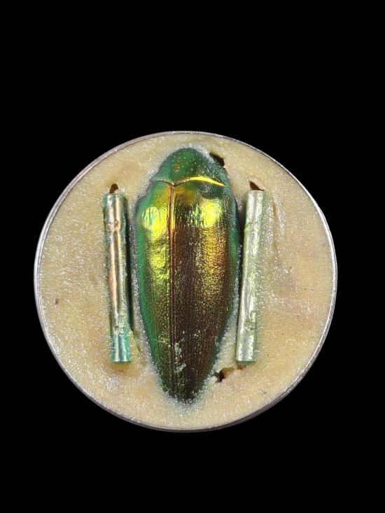 สีผึ้งพรายเทียนแมลงทับ ตลับเหล็กใหญ่ หลวงพ่อเมียน กัลยาโณ |