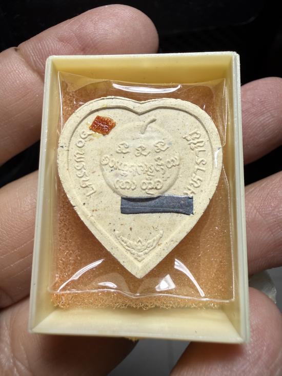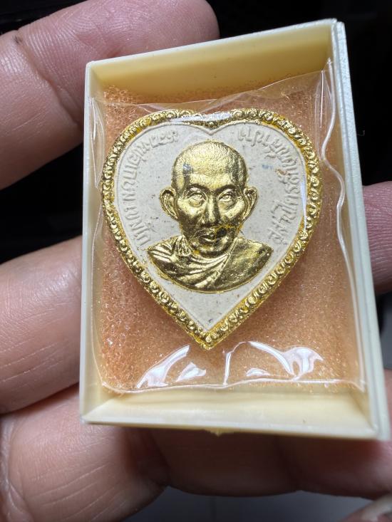 หลวงพ่อเกษม เขมโก พระเนื้อผงรูปหัวใจ ปิดทองติดจีวร ฝังตะกรุดเงิน