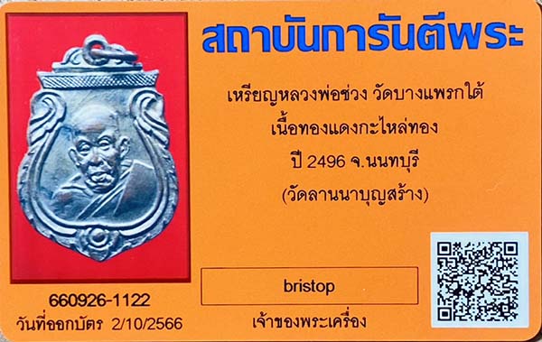 "G"...เหรียญลป.ช่วง วัดบางแพรกใต้ ออกวันลานนาบุญ /4 จ.นนทบุรี เนื้อทองแดงกะไหล่ทอง สภาพสวยๆพร้อมบัตรรับรองครับผม..."G"
