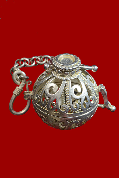 กระเช้าเงิน ใส่ลูกอมเส้นผ่าศูนย์กลาง 2 เซนติเมตร |