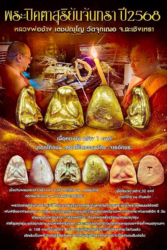 พระปิดตา สุริยันต์จันทรา หลวงพ่อช้าง วัดจุกเฌอ ปี2568 สร้างน้อย 32 องค์