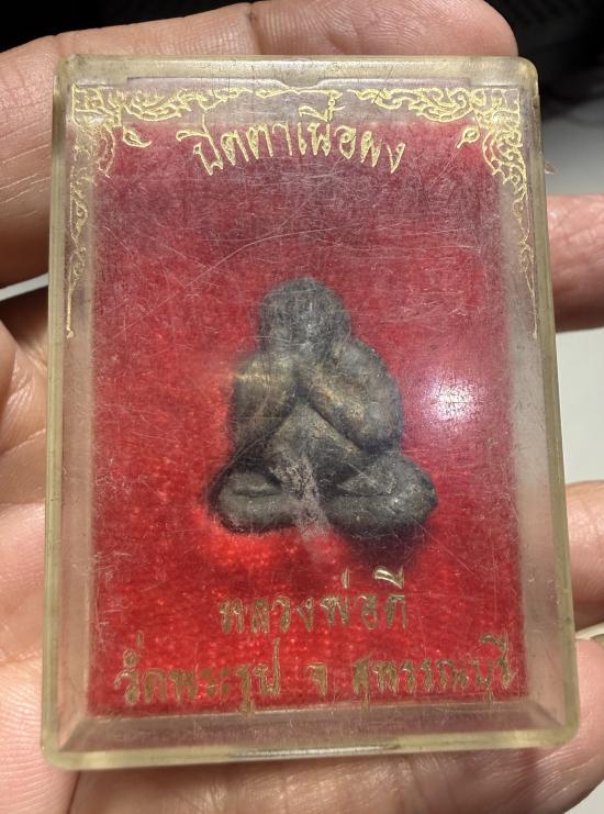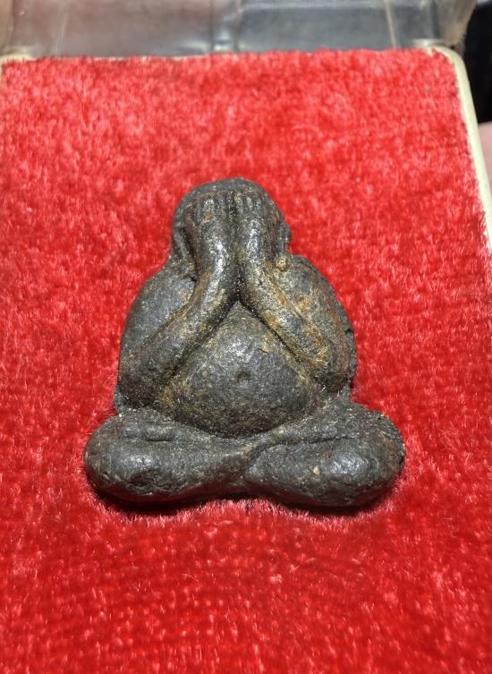 พระปิดตารุ่นแรก หลวงพ่อดี วัดพระรูป จ.สุพรรณบุรี เนื้อผงใบลานสวยเดิมนอนกล่อง วัด