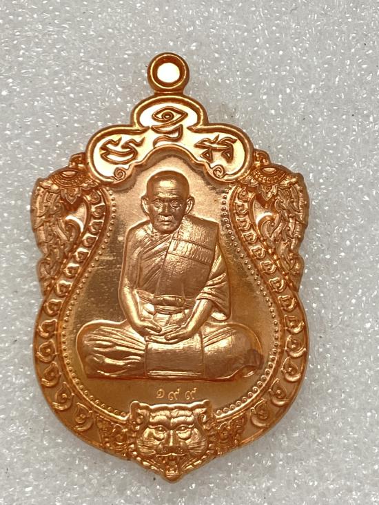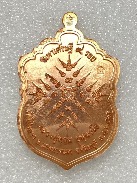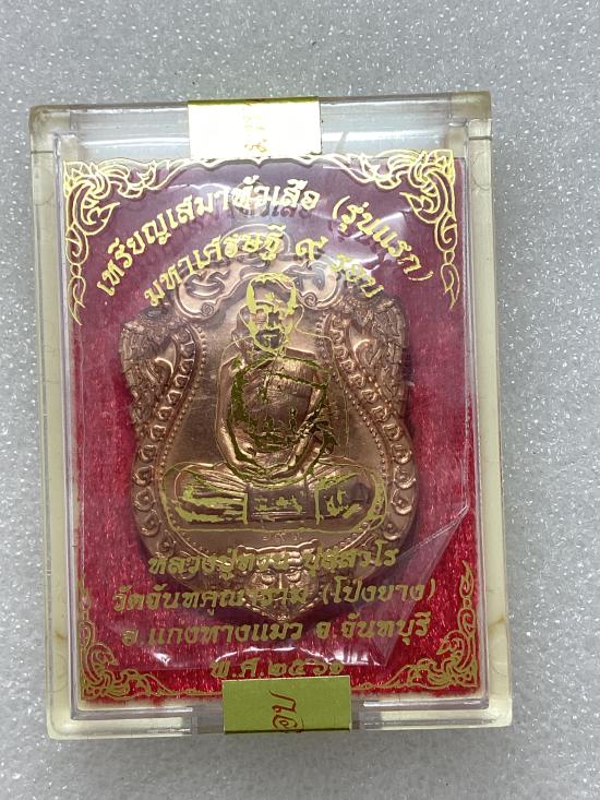 เหรียญ เสมาหัวเสือ(รุ่นแรก) มหาเศรษฐี 9 รอบ หลวงปู่ทวน ปุสฺสวโร วัดโป่งยาง จ.จันทบุรี เนื้อทองแดง กล่องเดิม