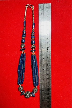 สร้อยคองานมือ ประดับด้วยหินลาพิส คาเนเลี่ยน เม็ดเงิน งานนอก..