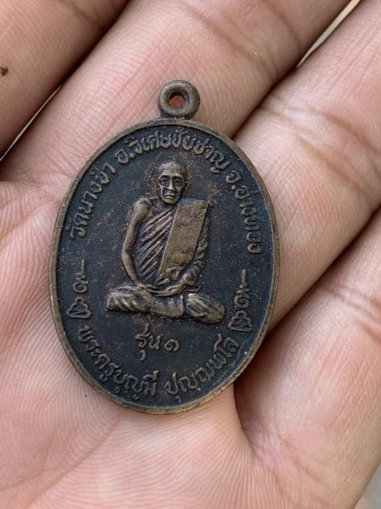 เหรียญหลวงพ่อบุญมี รุ่นแรก ปี 2519 วัดนางชำ หลังหลวงพ่อเพ็ชร์ จ.อ่างทอง