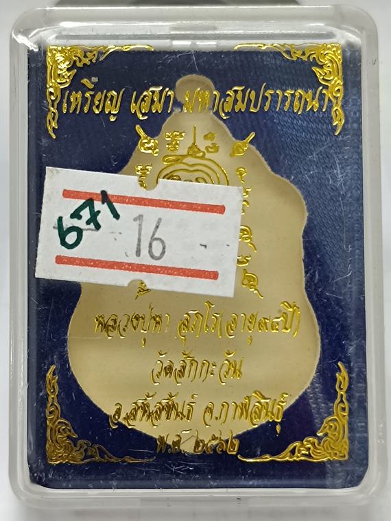 เหรียญเสมา มหาสมปรารถนา หลวงปู่หา สุภโร วัดสักกะวัน อ.สหัสขันธ์ จ.กาฬสินธุ์ เนื้อสัตตะหลังยันต์ หมายเลข 671