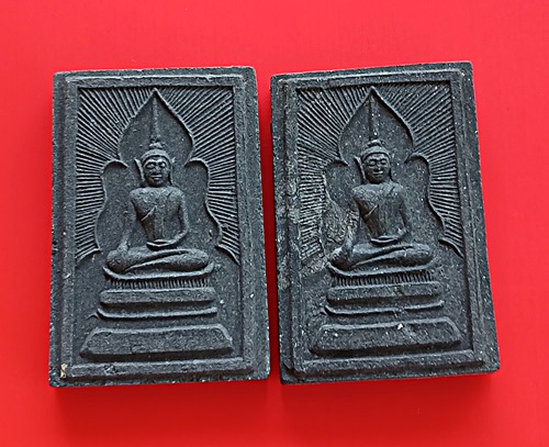 สมเด็จแหวกม่านหลวงพ่อกวย เนื้อผงพุทธคุณผสมเหล็กน้ำพี้ หลวงปู่หมุนปลุกเสก ออกวัดซับลำใย ปี2543 จำนวน 2 องค์ สภาพสวย สมบูรณ์