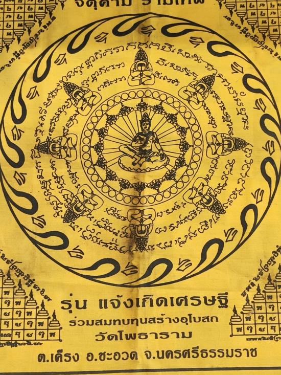 วัดใจ *** ผ้ายันต์ องค์พ่อจตุคามรามเทพ รุ่นแจ้งเกิดเศรษฐี วัดโพธาราม จ.นครศรีธรรมราช ขนาด 13x13 นิ้ว