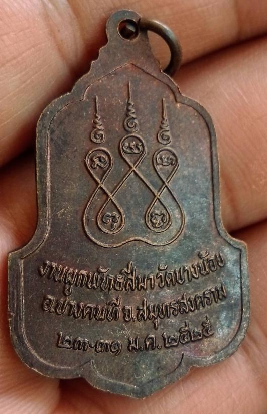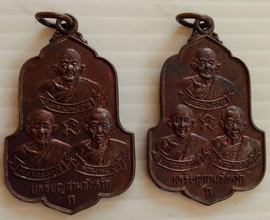 เหรียญสามจังหวัด หลวงพ่อสุด วัดกาหลง หลวงพ่อบุญ หลวงพ่ออยู่ งานผูกพัทสีมา วัดบางน้อย ปี2525 จ.สมุทรสงคราม รับจำนวน 2 เหรียญ