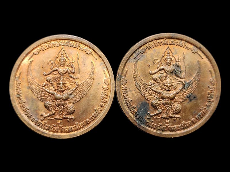 เหรียญนารายณ์ทรงครุฑ พิทักษ์แผ่นดิน หลวงพ่อเมียน วัดบ้านจะเนียง จ.บุรีรัมย์ พ.ศ 2553 จำนวน 2 เหรียญ