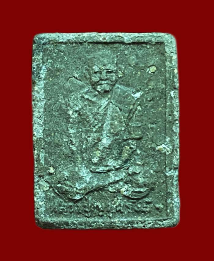 พระผงของขวัญ วัดเกาะจันทร์ จ.ฉะเชิงเทรา หลังรูปเหมือนหลวงปู่ญาณรังษีมุนีวงศ์ (ทำ) มีก้อนผงวัดปากน้ำ เนื้อดำ