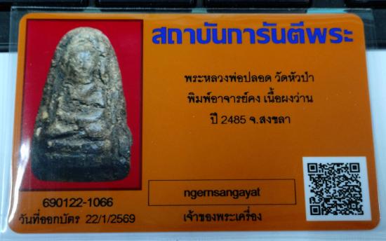 พระพิมพ์อาจารย์คง เนื้อผงยา พ่อท่านปลอด วัดหัวป่า จ.สงขลา ปี 2485