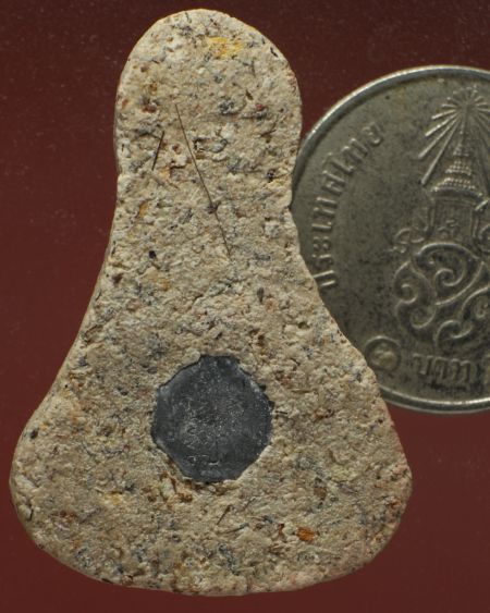 พระปิดตาเนื้อผง มีเส้นเกษา หลังฝังแผ่นยันต์ ไม่ทราบที่