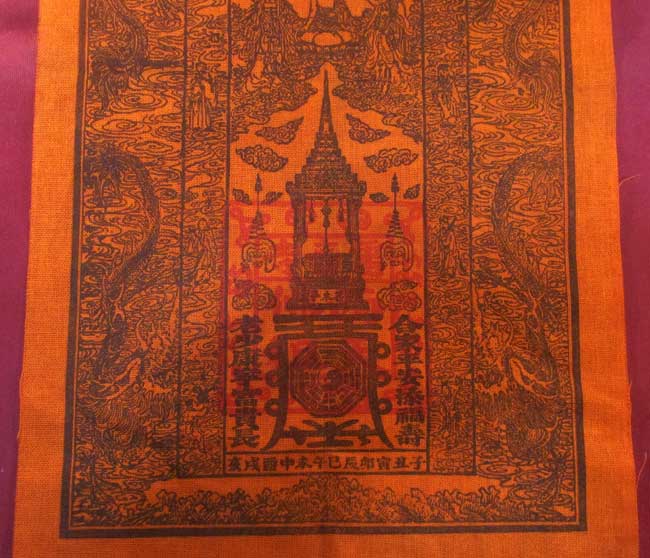 ผ้ายันต์ จีน ไม่ทราบที่ ลวดลายสวย ครับ (พระบ้าน ครับ)