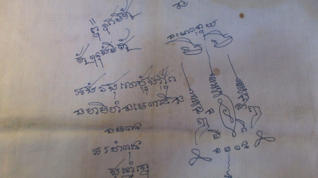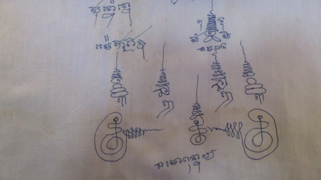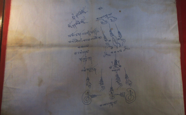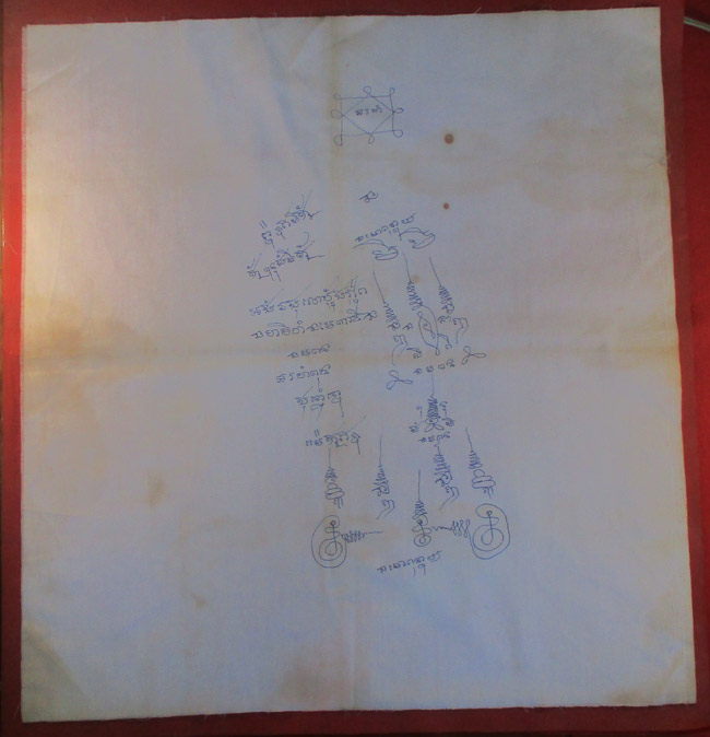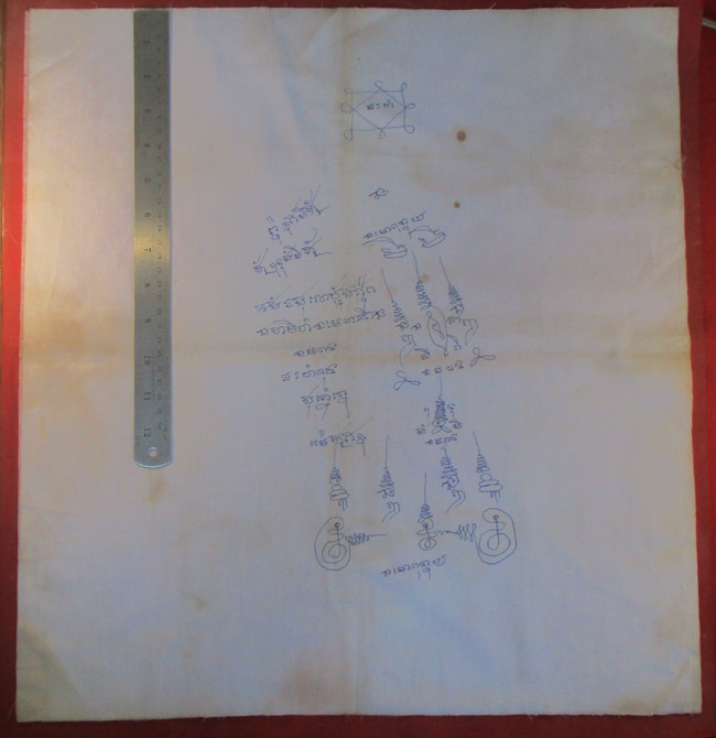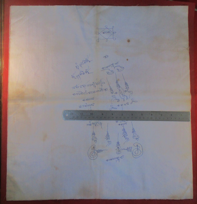 ผ้ายันต์ ไม่ทราบที่ จารยันต์ด้วยมือ ครับ