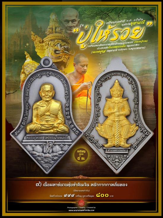 เหรียญทรงจำปี ปู่ให้รวย หลวงปู่ทวดประทับหลังท้าวเวสสุวรรณโณ เนื้อมหาชนวนชุบซาตินเงิน หน้ากากกาหลั่ยทอง ซิลเดิมลุ้นเลข